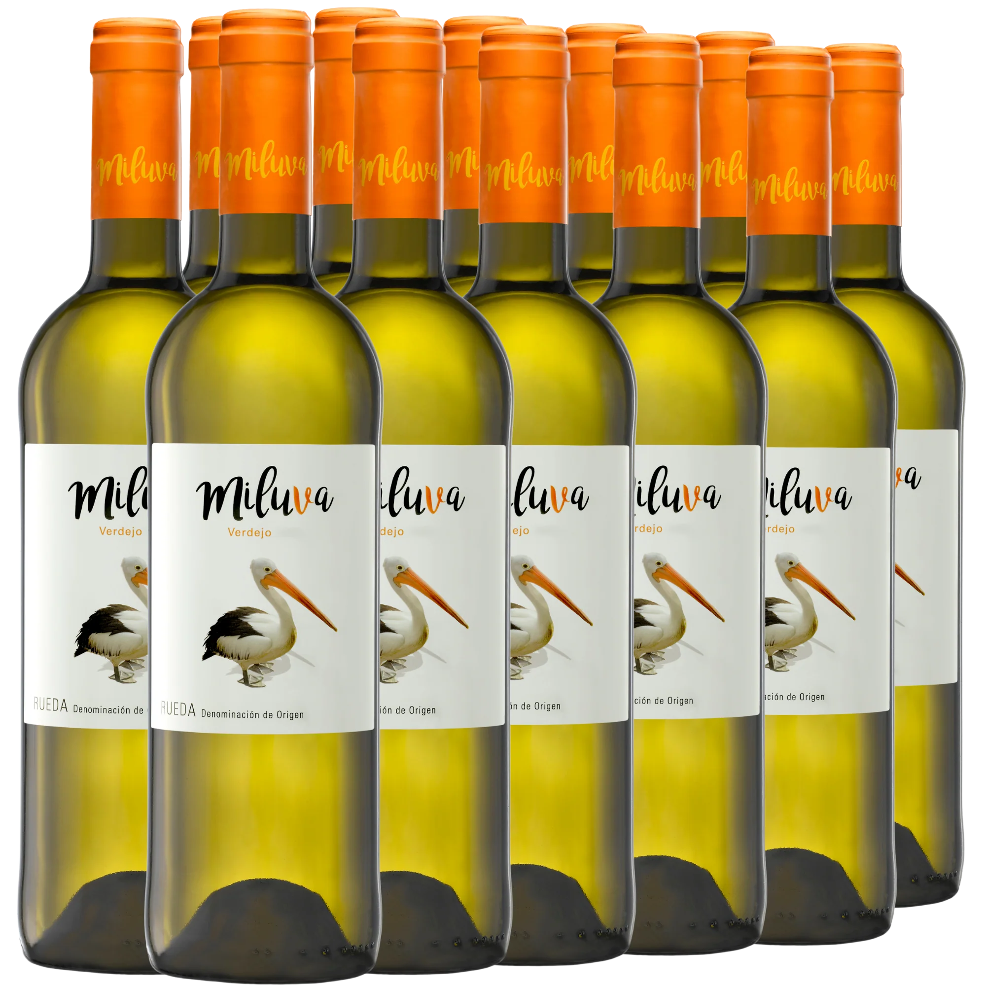 Miluva steht für die neue Generation spanischer Weißweine aus Rueda – modern, klar und mit einer charmanten Familiengeschichte im Gepäck. Der Name, abgeleitet von mil uva („tausend Trauben“), erinnert an Großvater Estéban Martín und seine Erzählungen von pelikanartigen Besuchern in den Weinbergen. Das junge Weingut Valdecuevas der Familie Martín setzt auf eigene Weinberge in 770 m Höhe, nachhaltigen Anbau und nächtliche Lese – denn kühle Temperaturen schützen die Frische der Aromen. Die Cuvée aus Verdejo und Sauvignon Blanc wird vom erfahrenen Önologen Antonio Nieto mit viel Fingerspitzengefühl vinifiziert – ein Wein, der Tradition und Innovation stilvoll vereint.