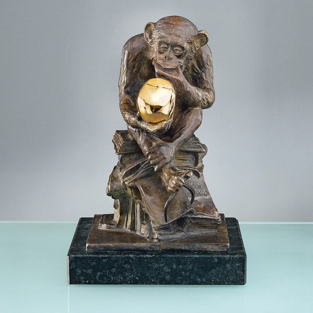 Wolfgang Hugo Rheinhold: Skulptur "Affe mit Schädel", Version in Bronze